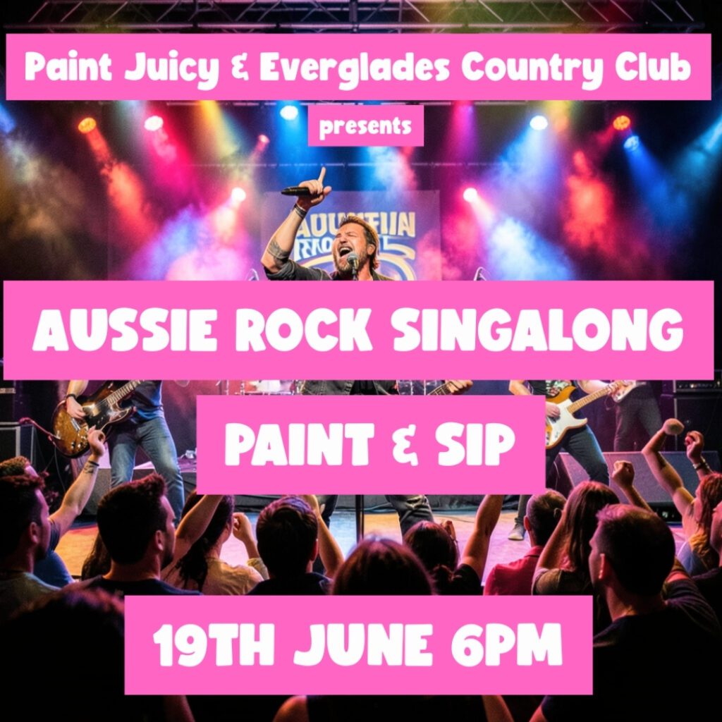 This is your excuse to belt out Aussie bangers while you paint something bloody iconic. Aussie Rock Paint and Sip is a high-energy night of loud tunes, loud laughs, and a step-by-step painting that even the “I can’t draw a stick figure” crowd will smash.