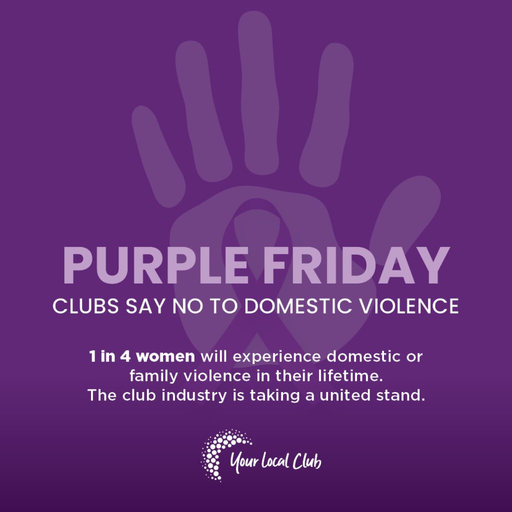 Purple Friday – Clubs Say No to Domestic Violence is a state-wide activation taking place on Friday, 8 May to demonstrate our industry’s commitment to creating safer communities and workplaces. The date is significant, with May being Domestic and Family Violence Prevention Month.